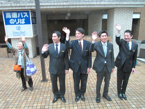 The Sunshine Prince Hotel staff waves goodbye to our tour group.