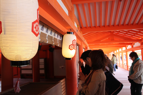 Once the ferry docked at Miyajima Island, we had to walk about half a mile to get to the shrine, but on the way, we were greeted by wild deer roaming around the beach. Unlike the deer we saw in Nara, these deer were less tame, chomping on paper or anything remotely resembling food.