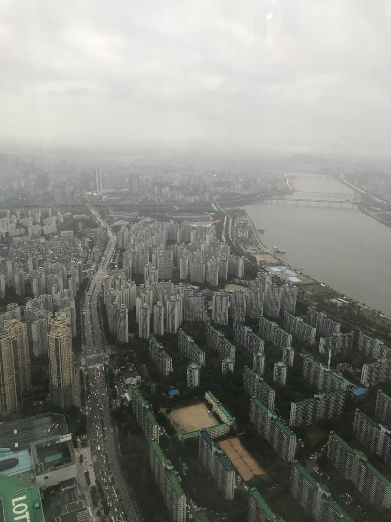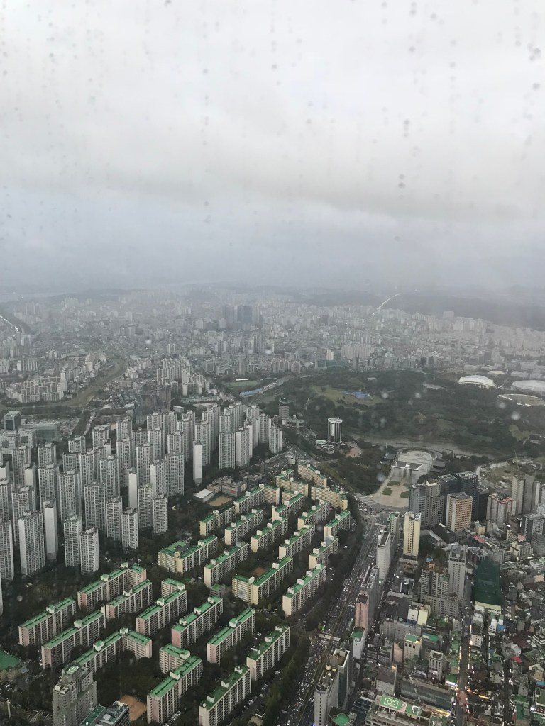 We ended the day at the Lotte Tower, a 123-story skyscraper with sweeping views of Seoul. Unfortunately for us, the view was shrouded by rain covering practically the entire city. I can’t say it was terrible, though. I was still grateful to see it all from above.